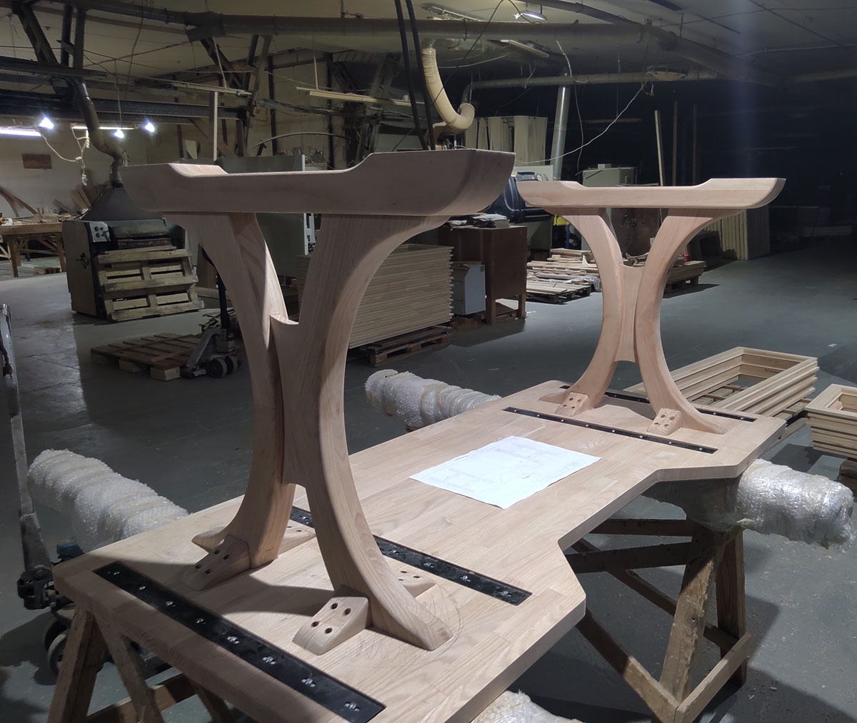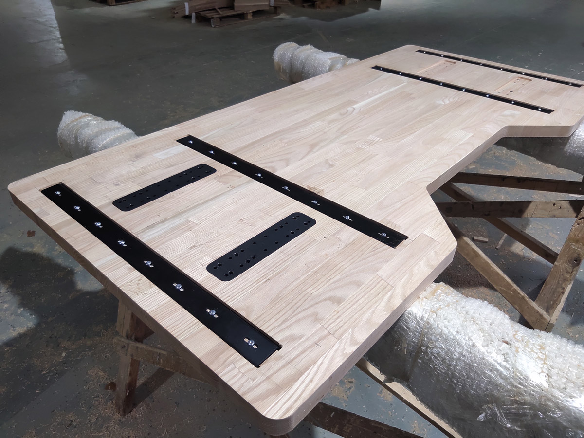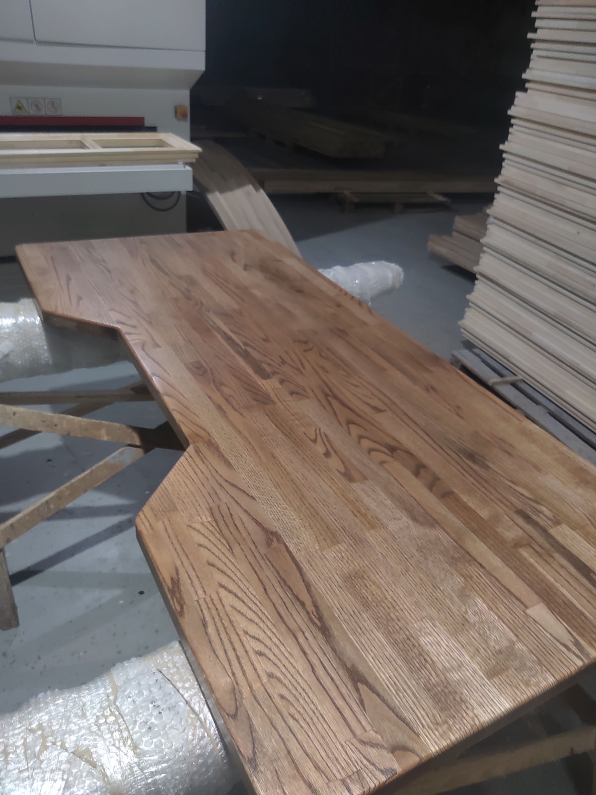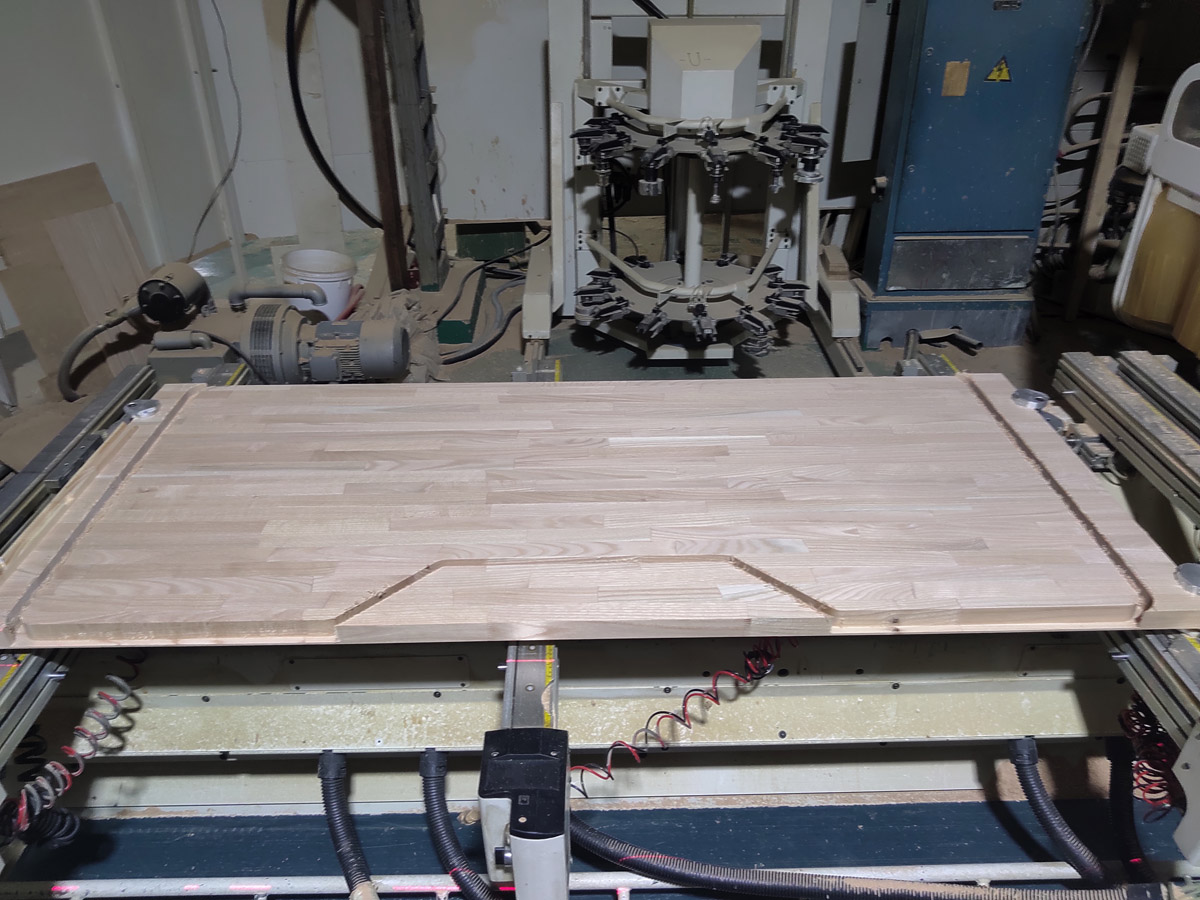 Когда ноги были готовы пришло время взяться за столешницу. Щит для неё было давно готов и почти год лежал в цеху.