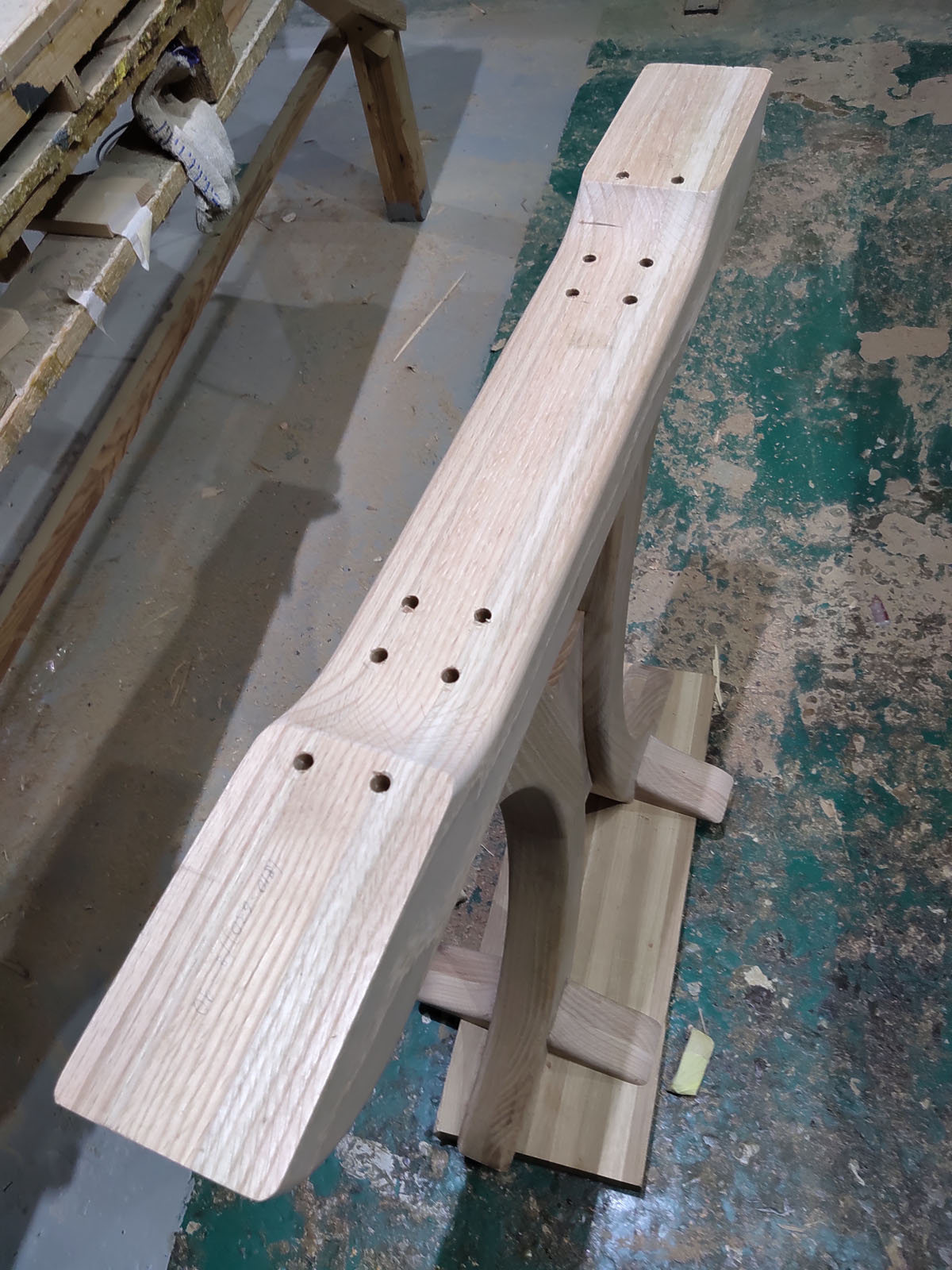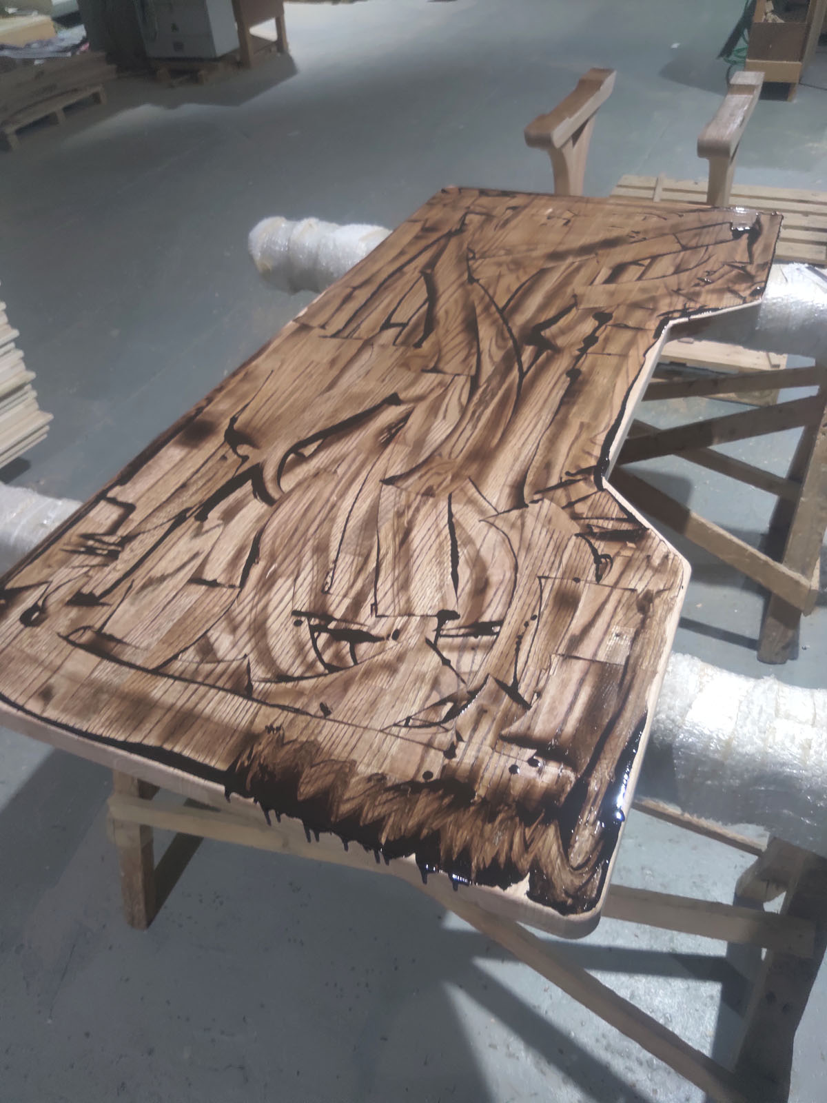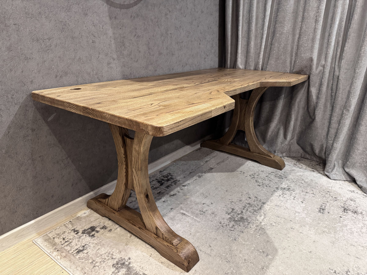 Когда ноги были готовы пришло время взяться за столешницу. Щит для неё было давно готов и почти год лежал в цеху.