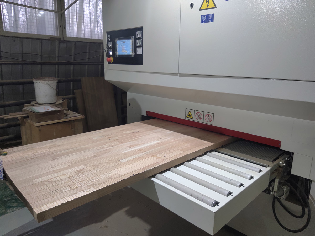 Первым дело загнали его калибровально-шлифивальный станок и отшлифовали до толщины 40 мм.