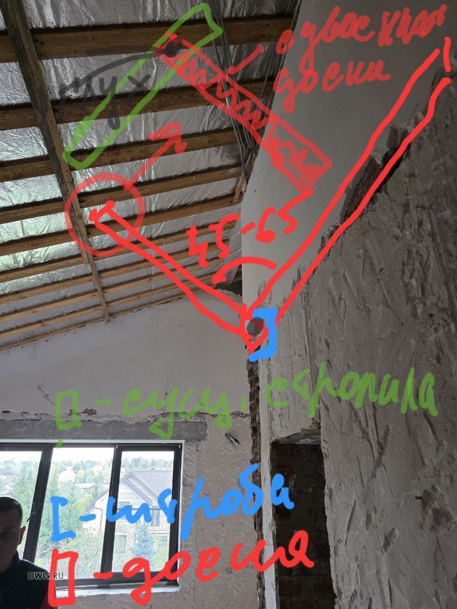 Требуется выполнить чертеж с 2мя узлами где стропильная балка переопирается на раскосы, рисунок отруби прилагаю. Также определить сечение раскоса.