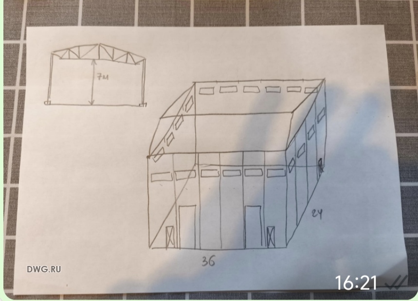 Проект КМ, КЖ, АС, КМД металлоконструкции ангара 24х36х7