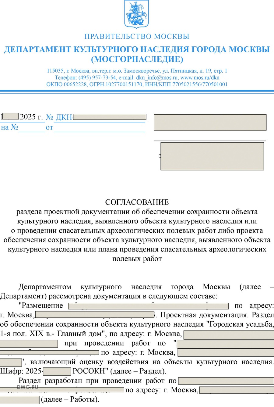Разработка разделов обеспечения сохранности ОКН для ДКН/ГУКН МО