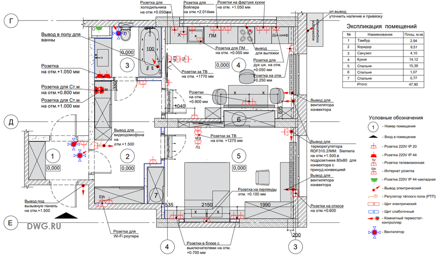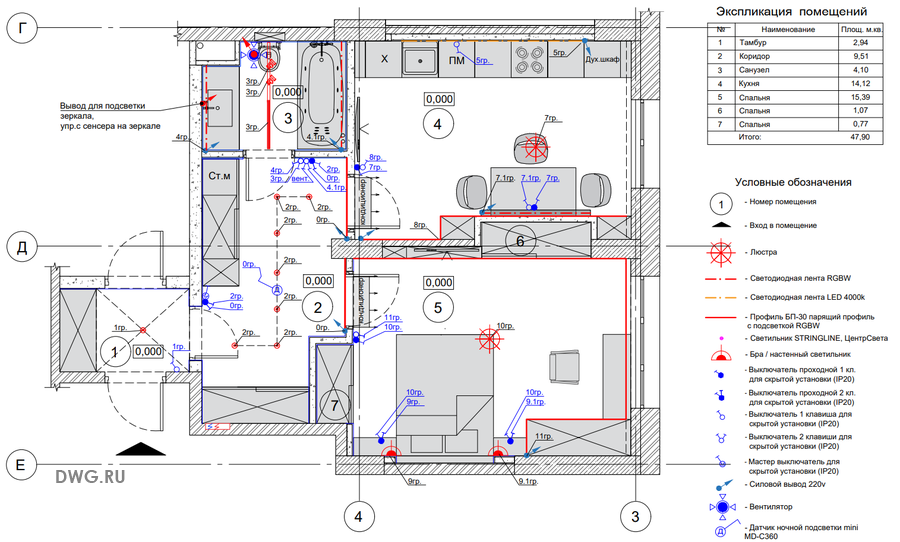 Необходимо разработать проект ЭОМ для однокомнатной квартиры.