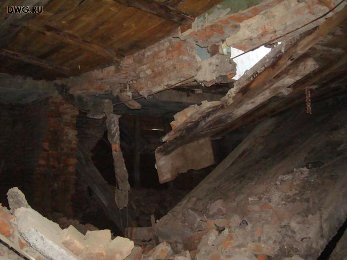 Фото 2. Обвалилась часть несущей стены в подвале, следом обвалились плиты перекрытия над подвалом, несущая стена повисла на двух поперечных. А НА 2,3,4 ЭТАЖАХ ПРОДОЛЖАЮТ ЖИТЬ ЛЮДИ.
