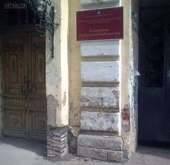 Продолжение к граниту науки. Вовсе это не фотошоп, а элементарное отсутствие кирпича и масса ненужных книг.