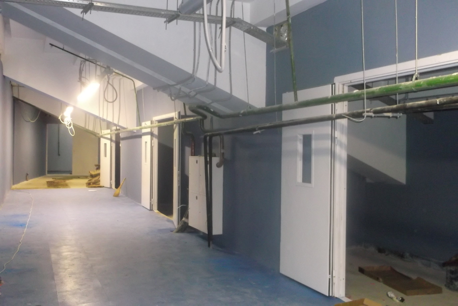 перенос части системы пожарутушения возможно пришлось дополнительно согласовывать, поэтому не исключено что двери сразу поставили что бы не ждать