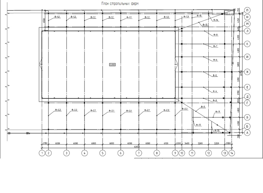 А снеговой район какой интересно? решетка ферм на вскидку тонковата. Интересен узел 1 в ферме Ф-5 где раскосик к нижнему поясу крепится в торец пояса :-)
