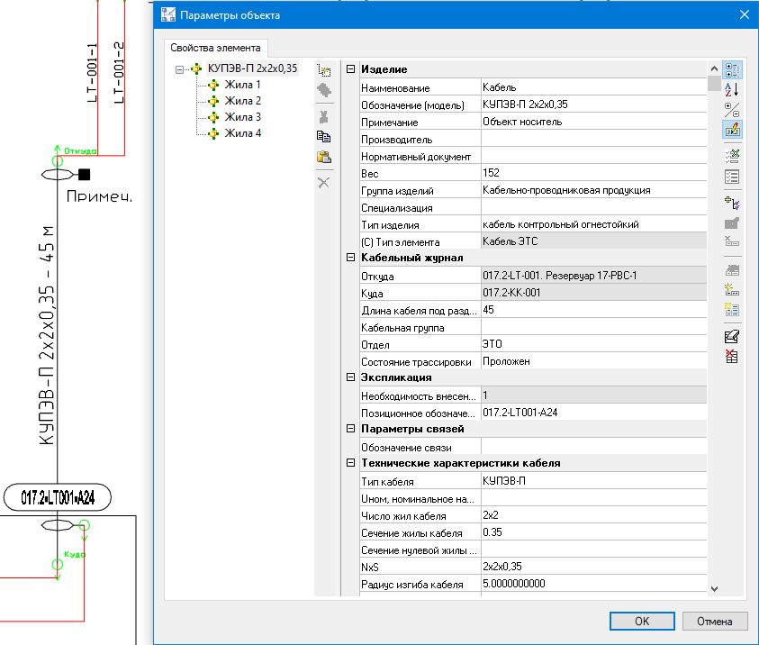 Рис. 15. Элемент «Многожильный кабель» с атрибутивными свойствами