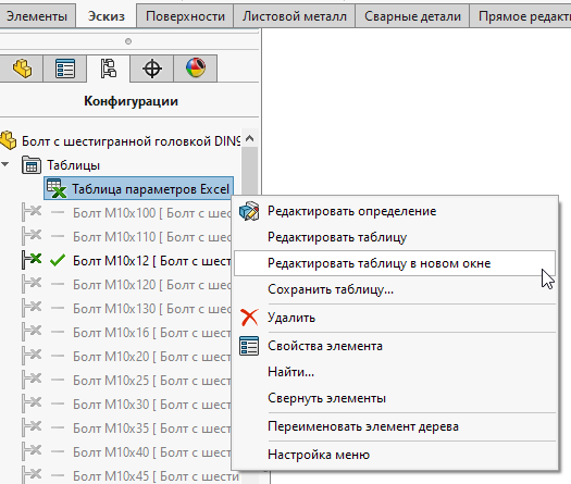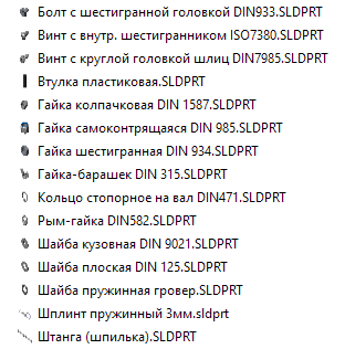 Метизы сделаны с нуля по методу таблицы параметров в файле конфигурации xls. Т.е. файл один с разными конфигурациями (размерами).