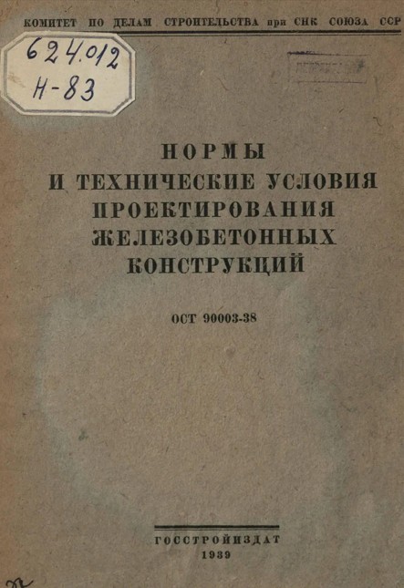 ОСТ 90003-38 Нормы и технические условия проектирования железобетонных конструкций. - 1939 год