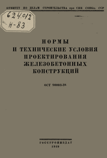 Нормы и технические условия проектирования железобетонных конструкций. ОСТ 90003—38.